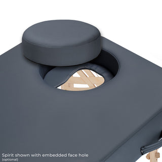Earthlite Spirit™—a pinnacle of portable massage table. A masterpiece of craftsmanship and innovation. Precision-engineered with Earthlite’s exclusive Jointless™ formed beam technology, this table is crafted from the finest eco-friendly materials for unmatched durability and sustainability. Perfect for professionals, it is built to provide a lifetime of exceptional use.