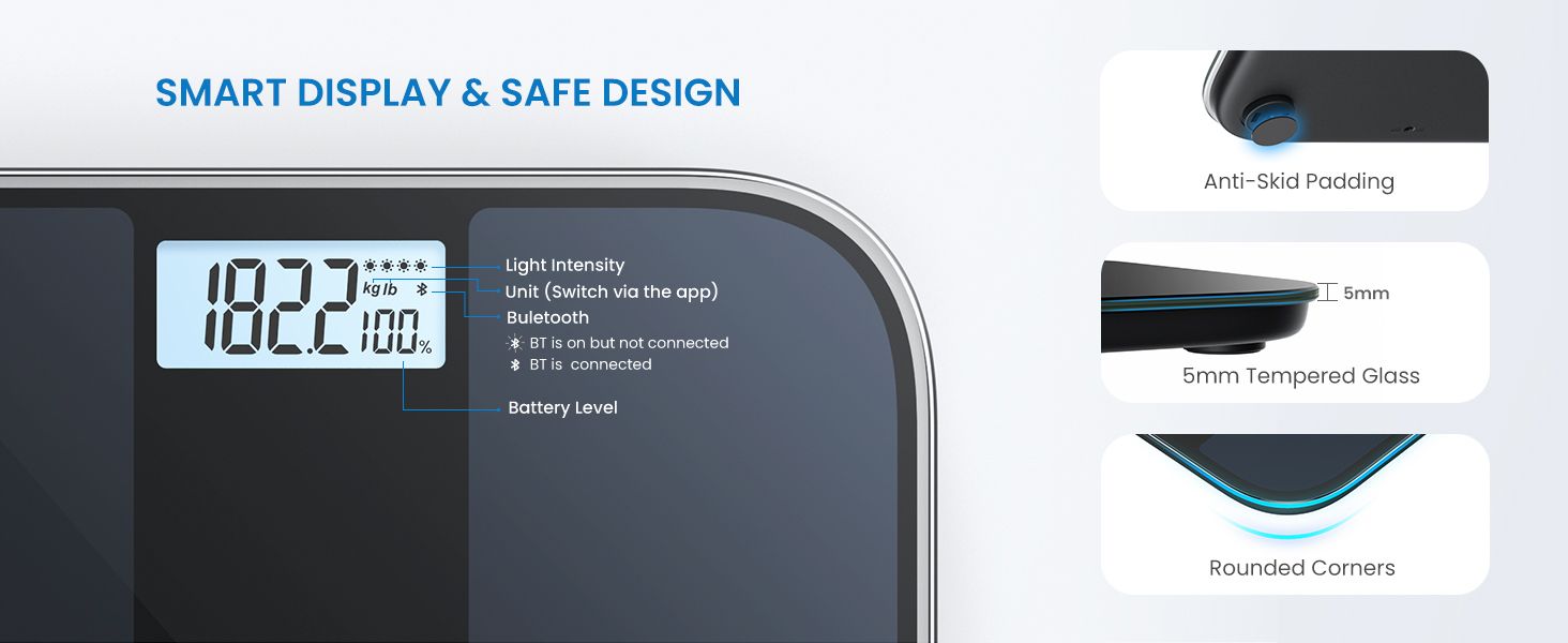 More than just a weight scale, the Elis Solar 2 connects to the Renpho app to provide comprehensive body composition data, including body fat percentage, BMI, muscle mass and more. It’s perfect for anyone wanting to track their progress—whether you're an eco-conscious individual, dedicated fitness enthusiast, or simply aiming to improve your lifestyle.